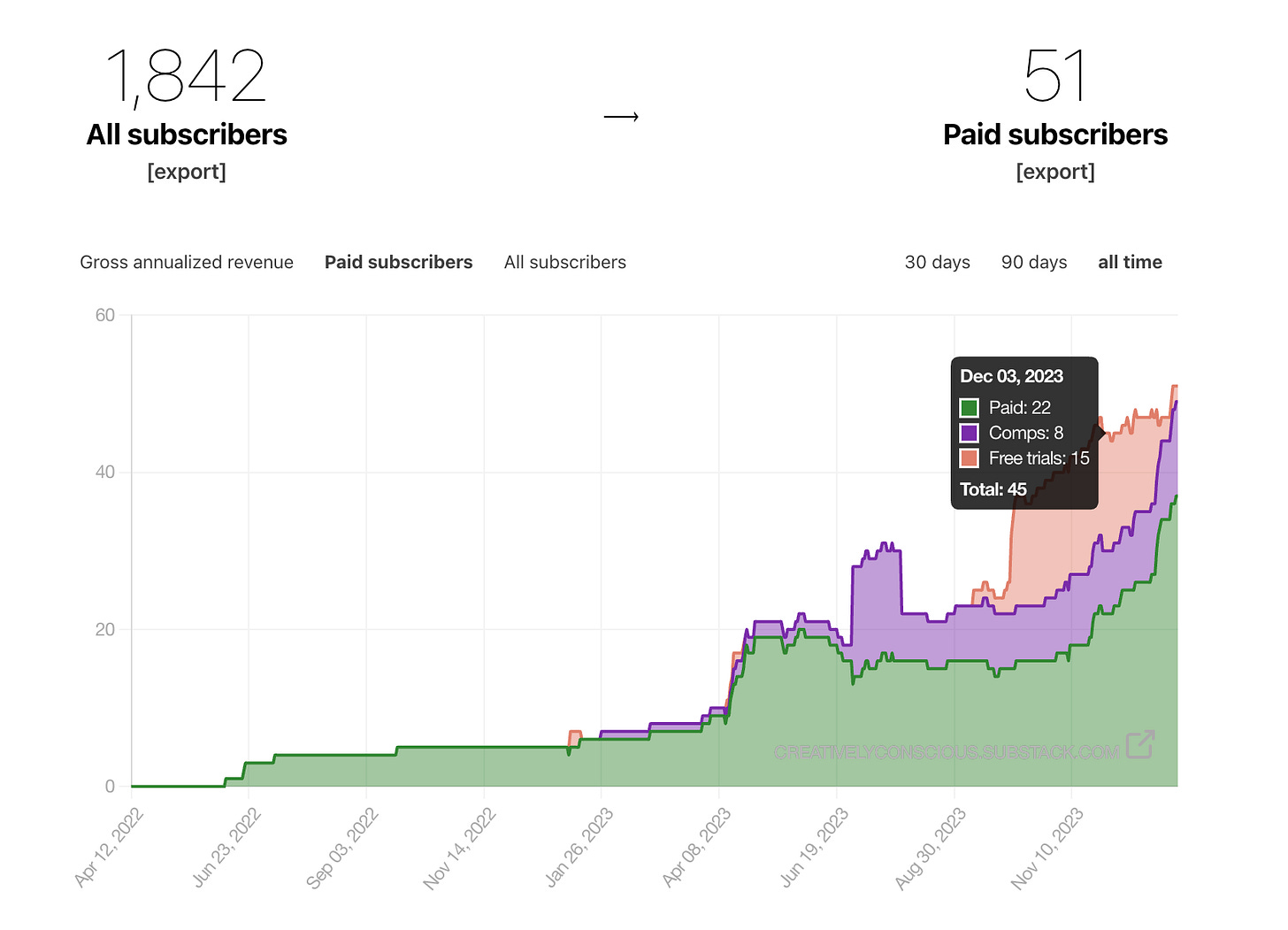 Also, because I am engaging with readers every day through the free chat threads, I think that also leads to a lot of goodwill and more people taking out a paid subscription.