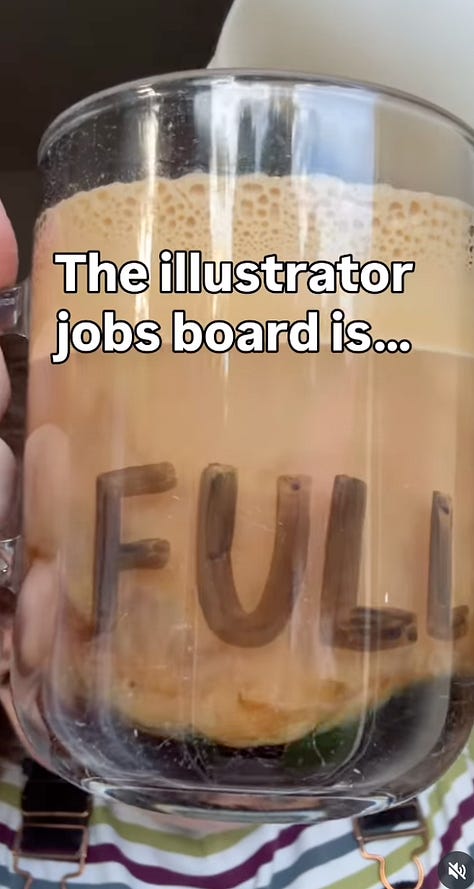 - Illustrators using AI to write their jobs board applications (which can be a bit embarrassing when two different illustrators write almost identical words)