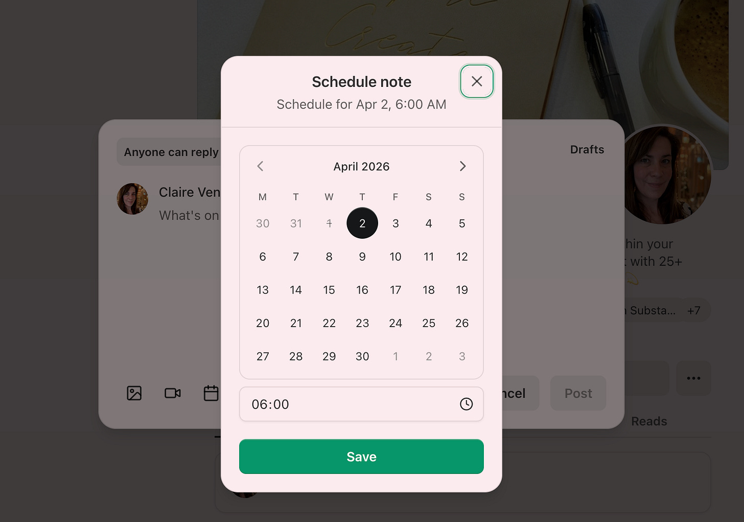 3. Scheduling Notes (the Practical Demo) Claire walks through Substack’s new Notes scheduling feature, showing how to draft, save, and schedule notes in advance — useful for holidays, busy periods, or reaching audiences in different time zones. She advises putting links in the comments rather than the note itself (for better reach), tracking which notes convert to subscribers (not just likes), and not obsessing over vanity metrics. She plans to experiment with scheduling notes overnight to reach international audiences.