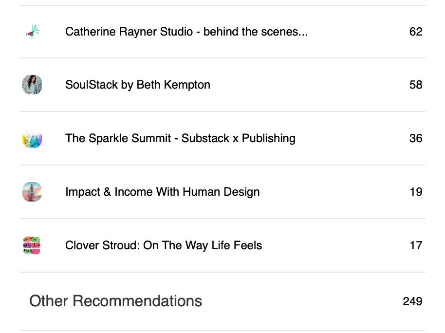 Lastly, thank you to Catherine Rayner, Leanne MacDonald, Beth Kempton and Clover Stroud for recommending my work, supporting me and helping folks find Sparkle on Substack 💫