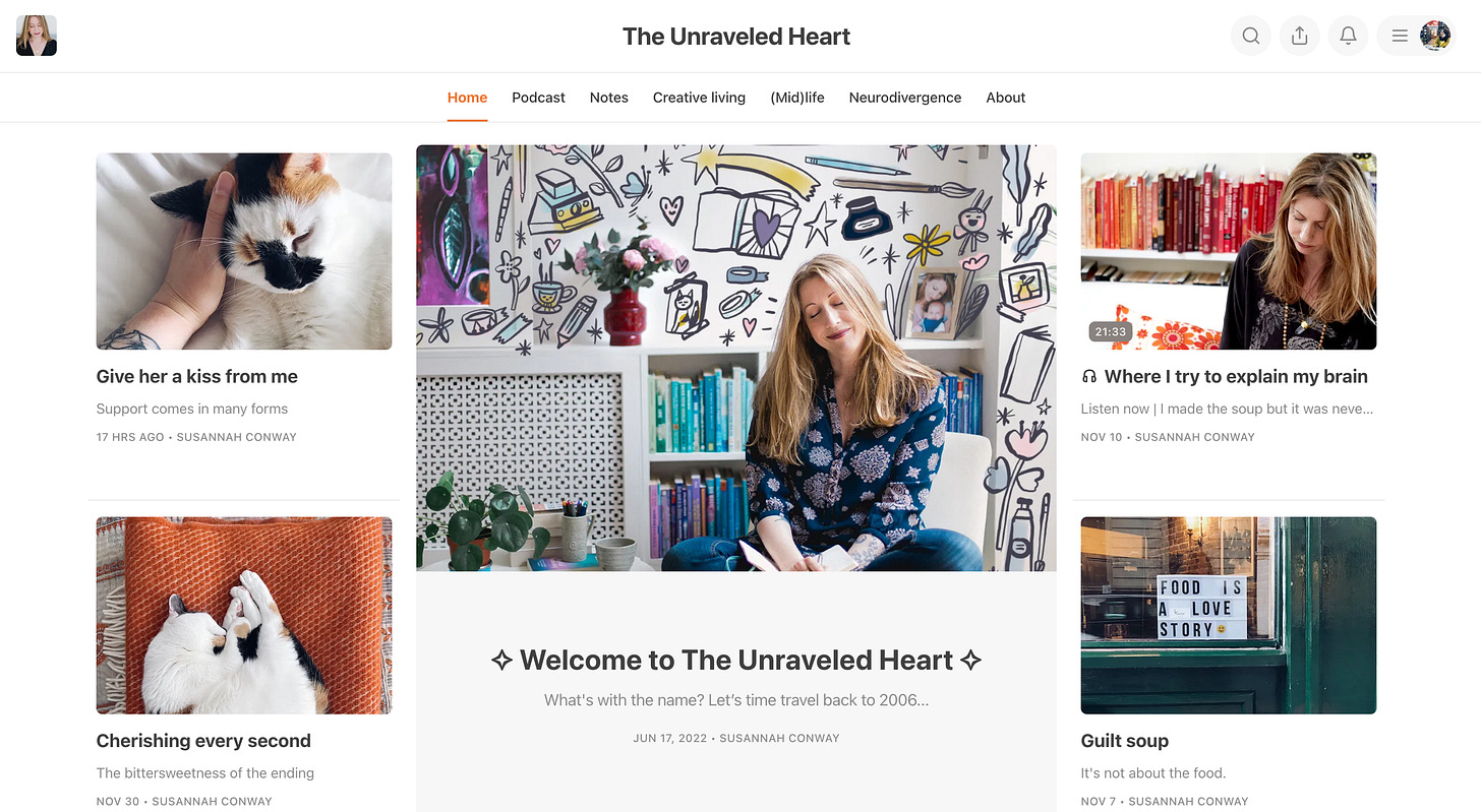 "My Substack; The Unraveled Heart is not a standalone business. This is an extra piece of my entire ecosystem. My main job is teaching creative courses online. That’s my number one job. So my Substack at the moment is supporting that a little bit, but I almost want to nurture that as an integral piece of the ecosystem."