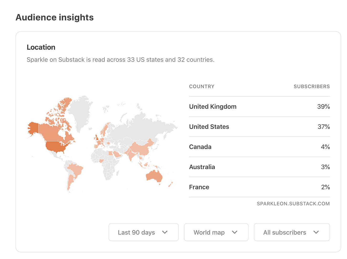 PS - Join my Membership Sparkles here where we work on our Substacks together! I have my chat open for member questions every Monday, twice monthly workshops and ‘coffee and creativity’ sessions (on zoom) where we problem solve and work on our Substacks.